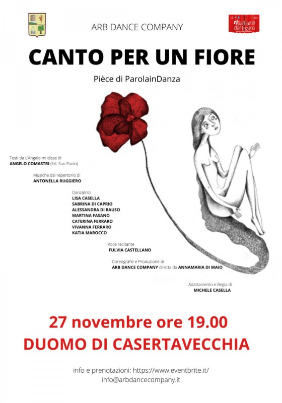 "ARB DANCE COMPANY presenta “CANTO PER UN FIORE” di Michele Casella. DUOMO DI CASERTAVECCHIA. SABATO 27 NOVEMBRE ORE 19. «Canto per un fiore». È la pièce di ParolainDanza che andrà in scena sabato 27 novembre alle 19 nel Duomo di Casertavecchia. Adattamento e regia di Michele Casella, produzione di Arb Dance Company di Annamaria di Maio. Lo spettacolo arriva a Caserta dopo aver toccato diverse città italiane, come Roma, in occasione- si legge nella nota- del Giubileo Mariano il 9 ottobre 2016, nella Basilica di Santa Maria in Trastevere. L’evento fa parte della rassegna «Ripartiamo dal teatro», promossa dagli assessorati alla Cultura e ai Grandi Eventi del Comune di Caserta e finanziata dalla Regione Campania (POC Campania 2014-2020), in programma fino al 30 novembre. L’ingresso è libero fino a esaurimento posti con prenotazione 72 ore prima di ogni spettacolo su www.eventbrite.it. L’accesso agli eventi è consentito agli spettatori muniti di green pass e di mascherina. Canto per un fiore è una pièce di danza e parola che, attraverso la figura di Maria, indaga la donna e le donne. Maria si rispecchia in tutte, tutte si ritrovano in lei. L’idea è nata da una riflessione sul libro L’Angelo mi disse, edizioni San Paolo, del cardinale Angelo Comastri, da cui sono tratti, peraltro, i testi dello spettacolo. Le pagine, che raccontano in prima persona la vita di Maria, toccano temi ed episodi che possono riferirsi a molte donne di ieri e di oggi: la gioia di un bambino nel proprio grembo, l’essere profughi, la sofferenza di fronte a un figlio morto ucciso. Sono donne di tutti i continenti che hanno ri-vissuto le esperienze mariane. A piedi nudi, sulla terra fredda, le donne-Madonne sorridono, piangono, urlano, partoriscono, girano i continenti attorno ai loro corpi. Sono spose, profughe, madri, bambine, africane, asiatiche, europee e di tutte le strade del mondo. Sono lì per innamorare e per rimproverare, per parlare e restare- si legge nella nota- in silenzio, per essere baciate e ferite. Cercano un posto anche dove non c’è posto. Vivono e muoiono ma dalla morte ri-nascono, come un fiore, e ri-generano, come fa la terra con i fiori e come solo la donna-Madonna può fare."