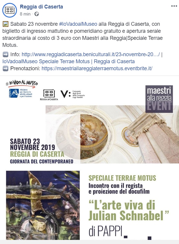 Questo quanto pubblicato sulla pagina Facebook della Reggia di Caserta: