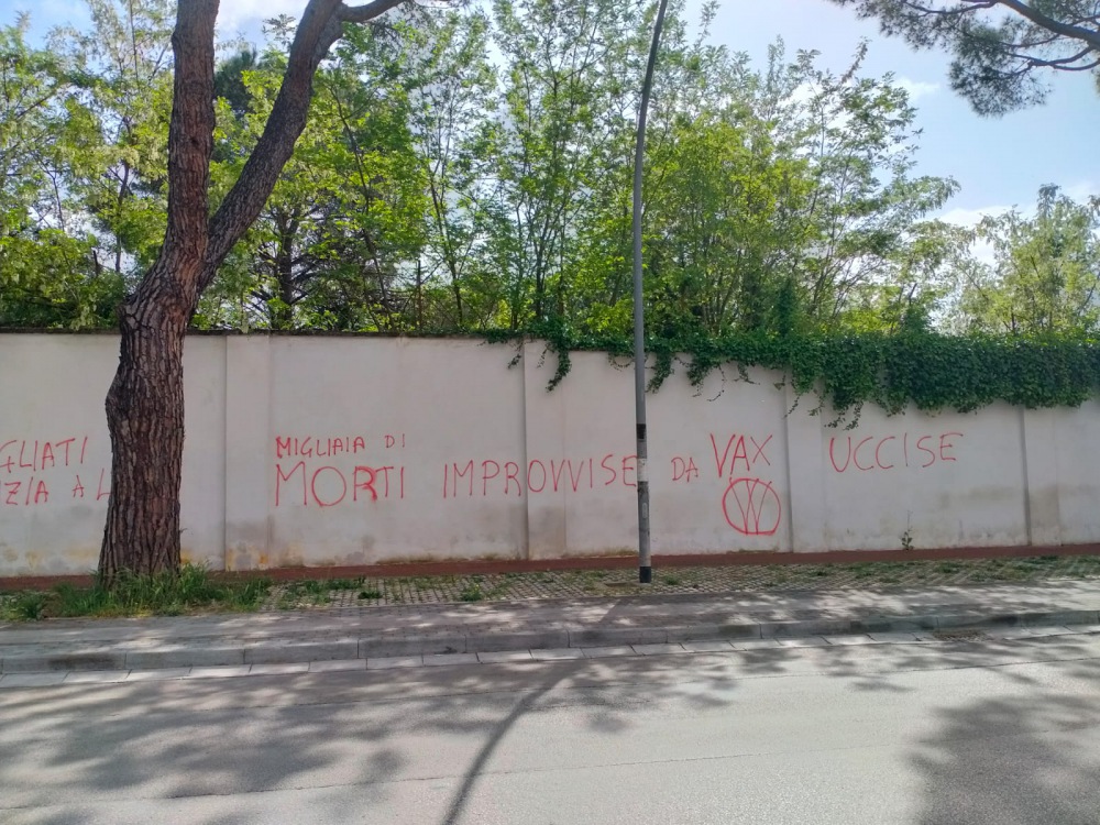 Sono apparse negli scorsi giorni diverse scritte no vax in diverse zone di Caserta. La foto ne ritrae una che si scorge sul muro del Macrico in via Unità italiana ma altre ce ne sono anche in zona mercato a via Ruta. La sigla del movimento no vax, che è rappresentata da una W cerchiata è ben visibile vicino ad ogni scritta. La campagna vaccinale massiva anti Covid si è conclusa ormai da tempo ma le persone contrarie, evidentemente, vogliono ancora manifestare il loro dissenso.