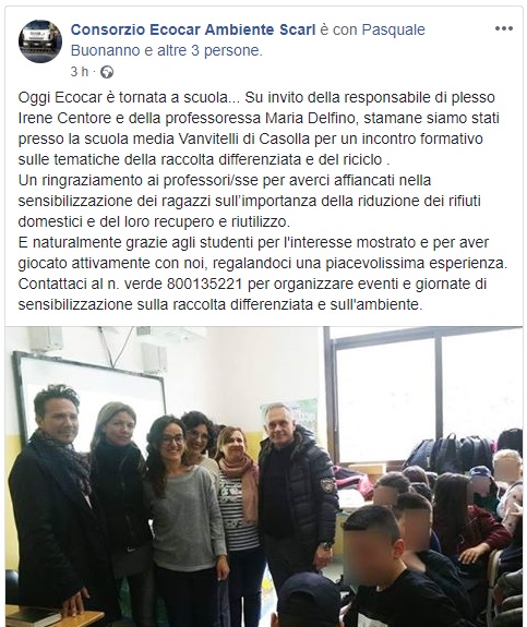 Il Consorzio Ecocar è stato presso la scuola media Vanvitelli di Casolla con l'obiettivo di sensibilizzare gli studenti alla raccolta differenziata e al riciclo.