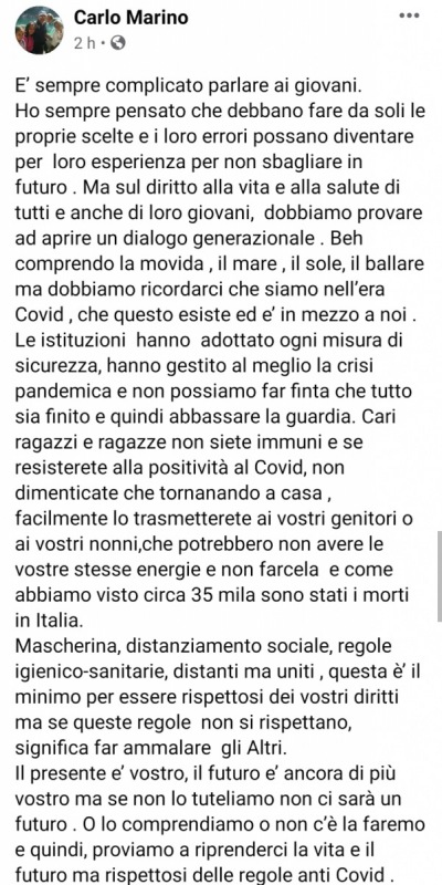 Lo apprendiamo dalla bacheca Facebook del Sindaco di Caserta, Carlo Marino.