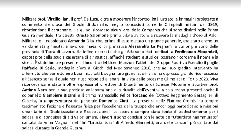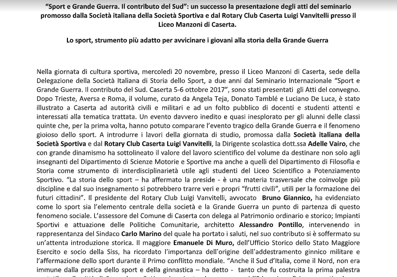 Di seguito, il testo del comunicato del Rotary Caserta Luigi Vanvitelli e della Società italiana della Storia dello sport, giunto in redazione.