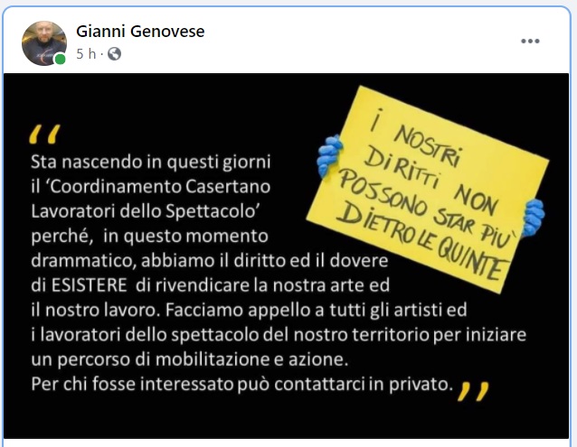 Questo quanto apprendiamo dal profilo fb di Gianni Genovese della Genovese Management