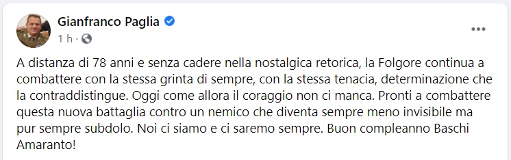 Questo quanto pubblicato dal Ten. Col. Gianfranco Paglia