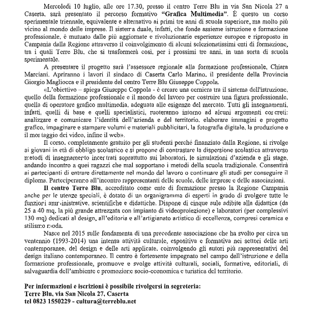 Di seguito, il testo del comunicato sul progetto "Grafica e multimedia", giunto in redazione.
