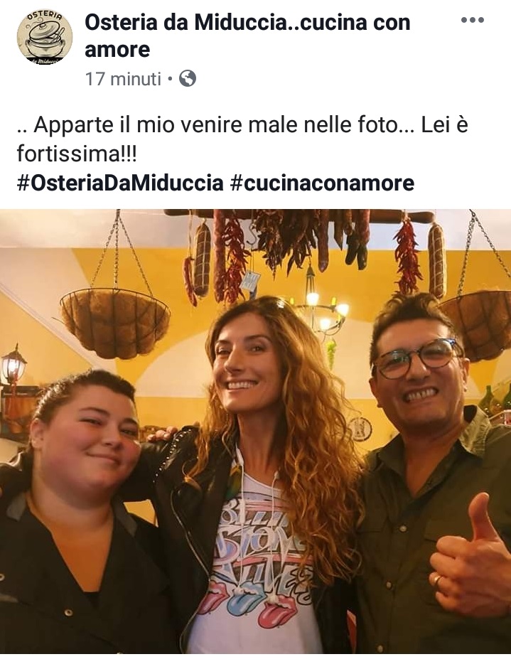 La "Iena" Nina si è fermata a pranzare all'Osteria da Miduccia. Chissà che la sua presenza in città non significhi che è al lavoro per un servizio giornalistico.