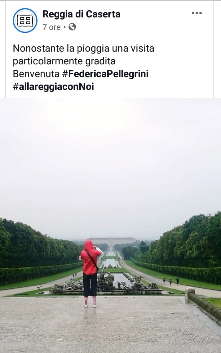 Dopo le prestazioni sportive una visita turistica non poteva mancare alla Reggia di Caserta per la 'divina' Federica Pellegrini.
