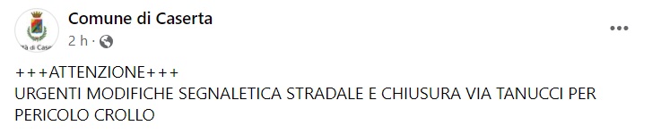 Questa l'Ordinanza del Comune di Caserta e quanto pubblicato sulla pagina facebook: