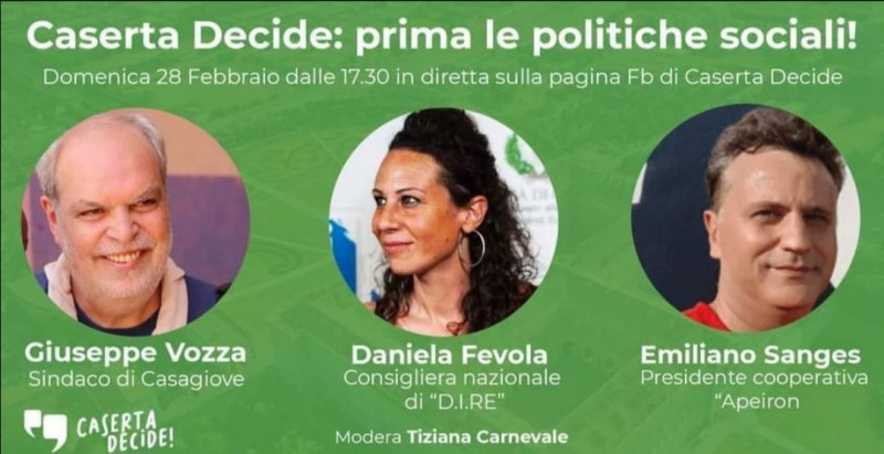 Pubblichiamo nota stampa di Caserta Decide: "È in programma per il 28 febbraio il nuovo webinar di Caserta Decide 'Prima le politiche sociali!'