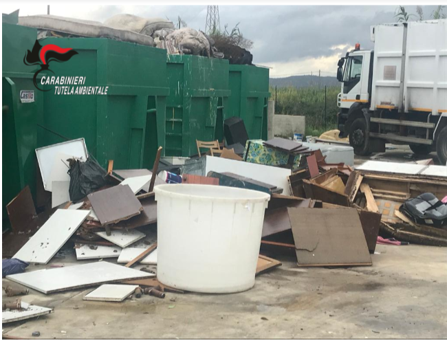 speciali, pericolosi e non pericolosi, di natura eterogenea (costituiti da vetro, ingombranti, carcasse di frigoriferi, pneumatici fuori uso, raee, abiti usati, plastica, sfalci di potatura, farmaci scaduti, pile esauste, legno, carta e cartone ecc…), depositati sia in cassoni, sia direttamente sul nudo terreno. Nell’area stazionavano due camion compattatori contenenti residui di RSU con evidente ricaduta del percolato sul suolo. I responsabili dell’isola ecologica sono stati denunciati in stato di libertà alla competente Autorità Giudiziaria per “gestione illecita di rifiuti”.
