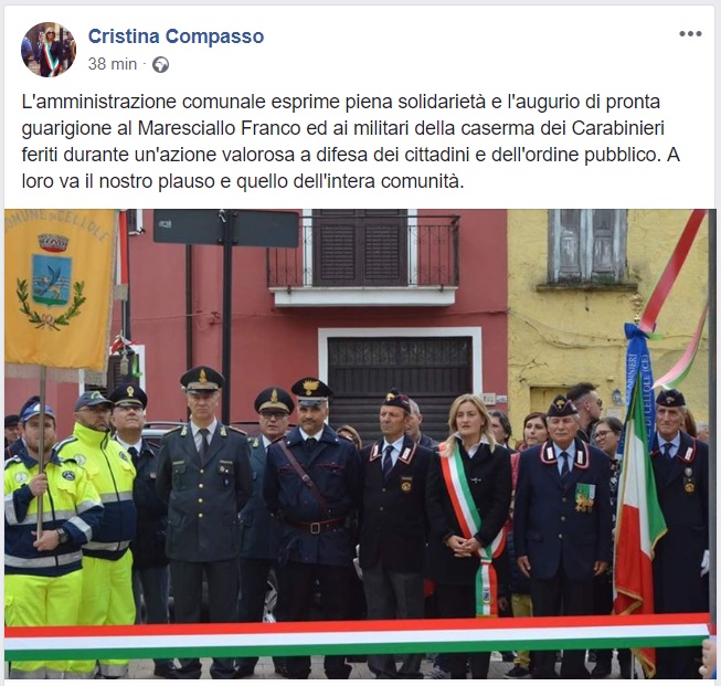 Questo quanto pubblicato sulla pagina Fb del Sindaco Cristina Compasso.
