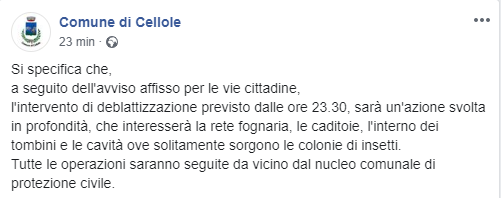 Questo il post pubblicato sulla pagina Facebook del Comune di Cellole:
