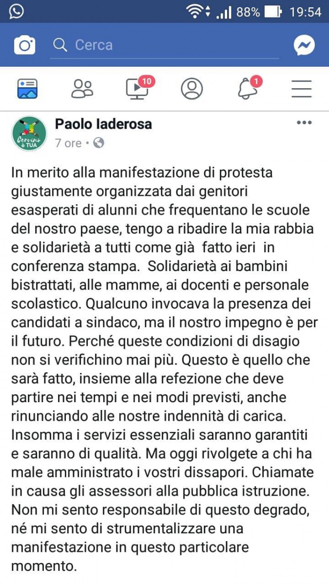 Questo il pensiero del candidato a Sindaco di Cervino Paolo Iaderosa sulla protesta dei genitori per il diritto alla scuola.