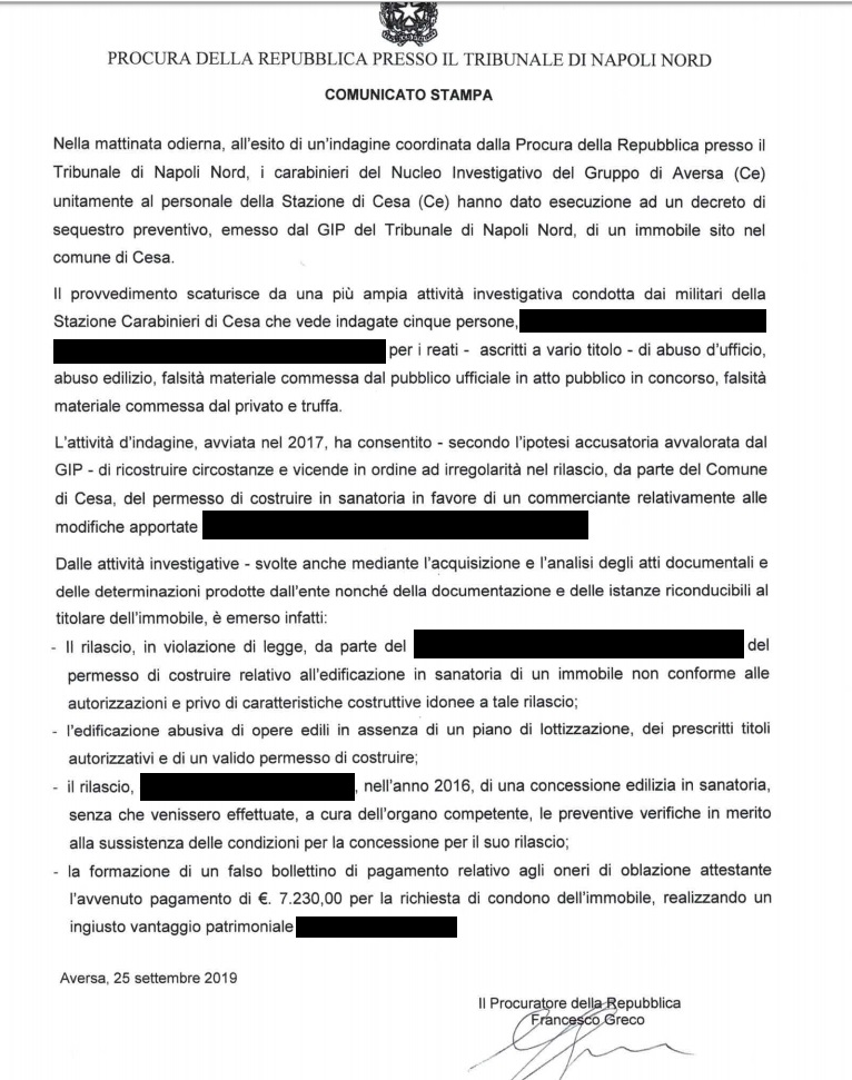 Questa parte della nota stampa giunta in redazione: