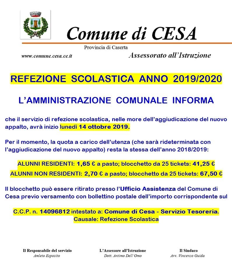 Lo apprendiamo dalla pagina Facebook del Comune di Cesa.