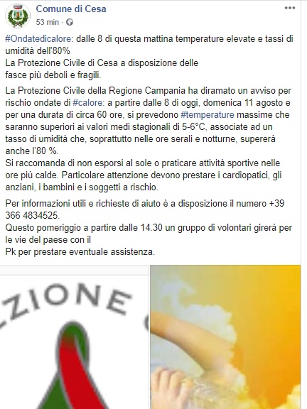 Questo quanto scritto sulla pagina Facebook del Comune di Cesa: