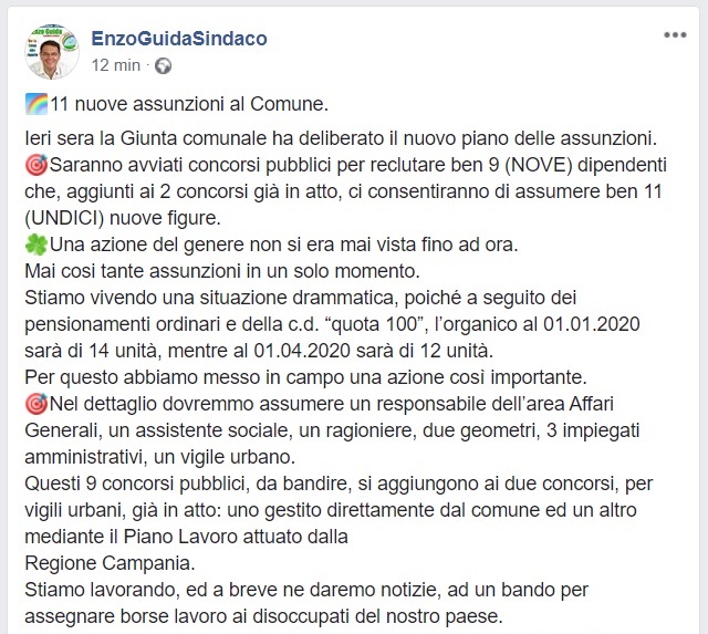 Questo quanto apprendiamo dal Sindaco Enzo Guida