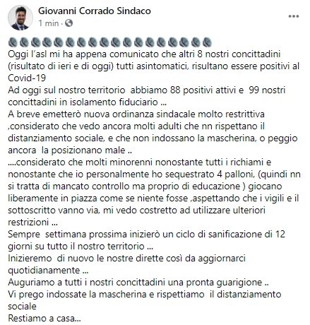 Lo apprendiamo dalla pagina Facebook del Sindaco di Cicciano Giovanni Corrado