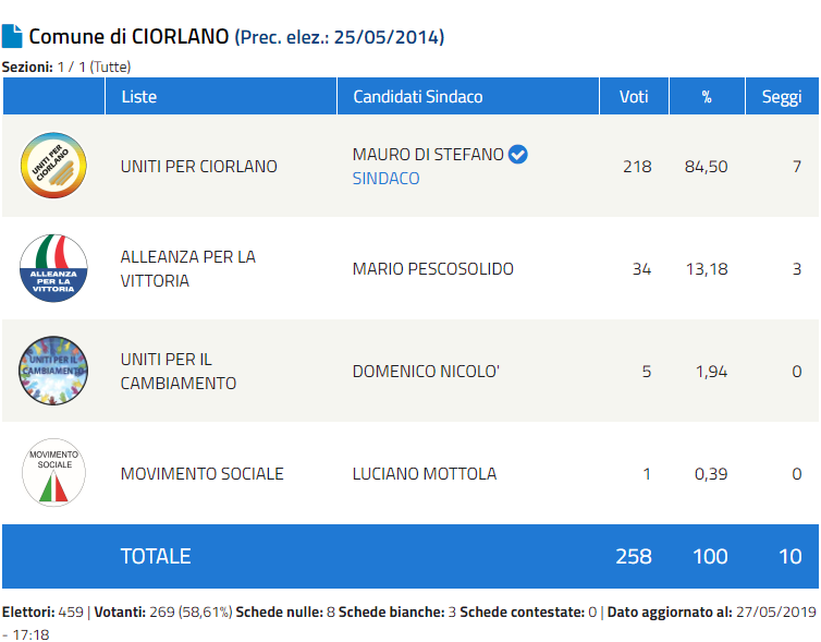 Mauro Di Stefano è il nuovo Sindaco di Ciorlano. Congratulazioni.