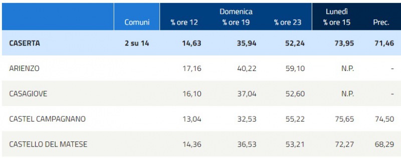 Ecco i dati aggiornati del Ministero dell'Interno, delle elezioni comunali 2020. Di seguito, il dato sull'affluenza finale al voto a CASTEL CAMPAGNANO. Ricordiamo che lo spoglio comincerà domani mattina dalle ore 9:00.