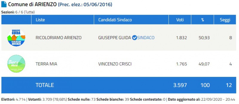 Terminato lo scrutinio delle Comunali ad Arienzo sul sito del Ministero. Giuseppe Guida eletto Sindaco. Di seguito il numero dei voti