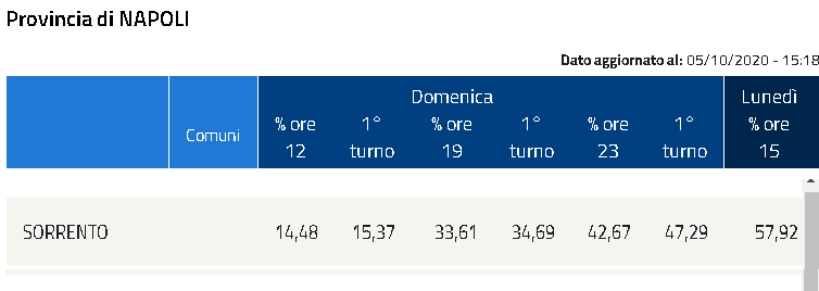 Ecco i dati aggiornati del Ministero dell'Interno, dei ballottaggi delle elezioni comunali 2020. Di seguito, il dato sull'affluenza finale al voto a Sorrento.