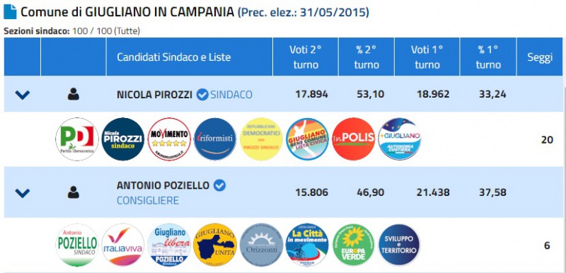 Terminato lo scrutinio delle Comunali a Giugliano sul sito del Ministero. Nicola Pirozzi rieletto Sindaco. Di seguito il numero dei voti