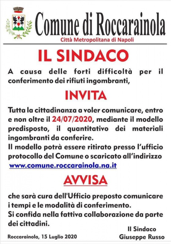 Lo apprendiamo dalla pagina Facebook del Comune di Roccarainola.