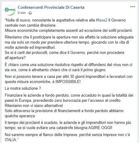 Questo quanto pubblicato da Confesercenti Caserta
