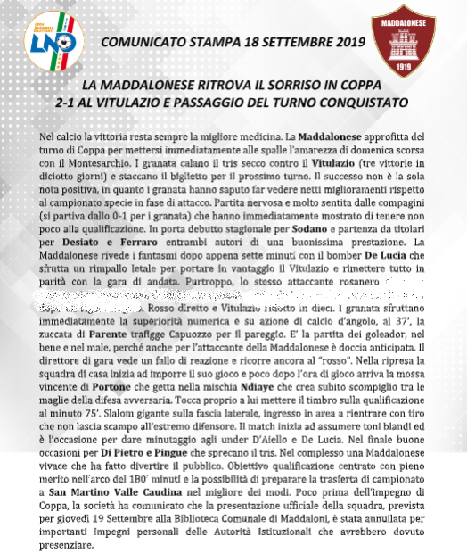 Di seguito, parte del testo del comunicato della Madalonese, giunto in redazione.