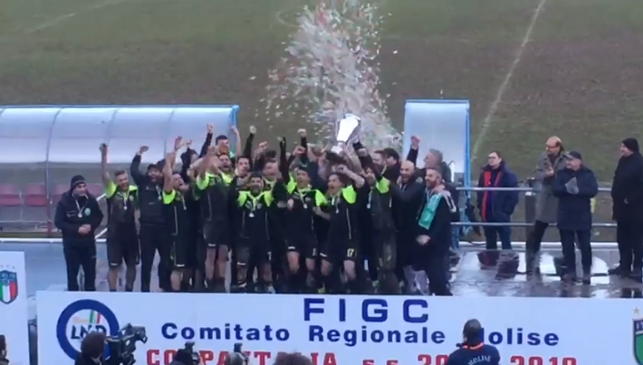 "È appena terminata allo stadio "M. Lancellotta" di Isernia la finale di Coppa Italia Molise che ha visto contrapposte le squadre del "Tre Pini di Piedimonte Matese" e del "Comprensorio Vairano". Il risultato di 3 a 1 in favore del "Tre Pini di Piedimonte Matese" ha sancito la meritatissima vittoria dei nostri giallo-verdi che così hanno conquistato l'ambita Coppa Italia Molise.
