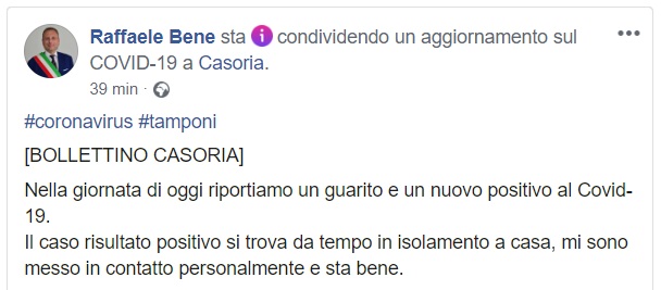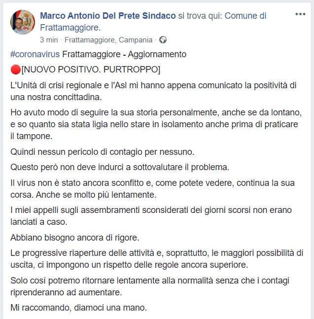 Questo quanto comunicato dai Sindaci di Frattamaggiore e Casoria