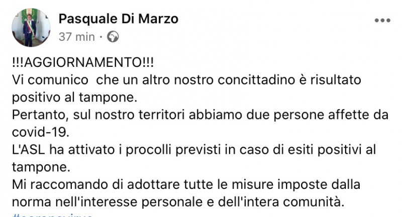 Questo quanto pubblicato dal Sindaco di Volla
