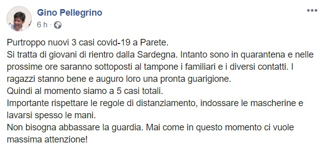 Questo quanto pubblicato sulla pagina facebook del Sindaco Pellegrino: