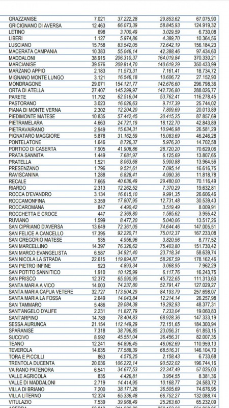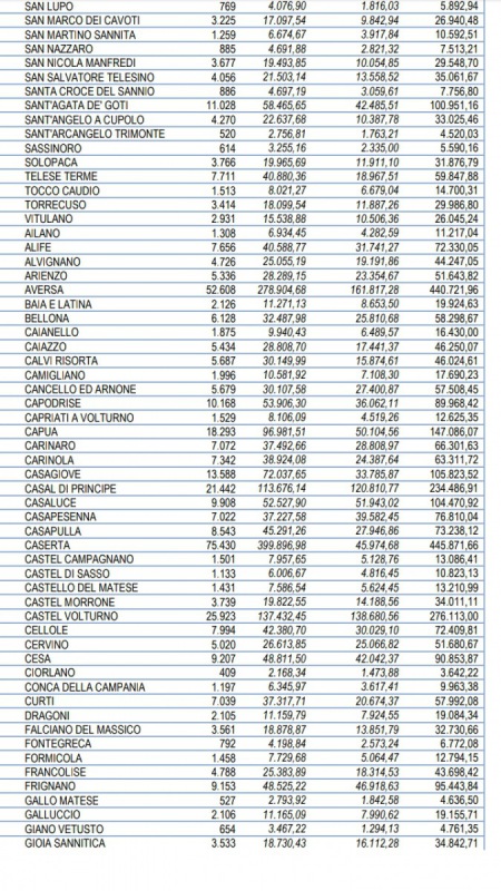 QUI SOPRA I SOLDI DESTINATI AI COMUNI DI CASERTA