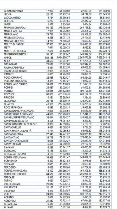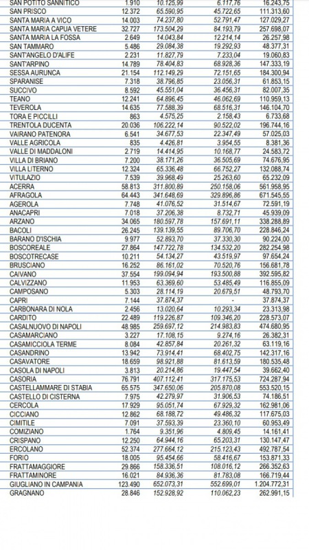 QUI SOTTO INVECE I SOLDI DESTINATI AI COMUNI NAPOLETANI