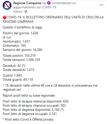 Dalla pagina Facebook della Regione Campania