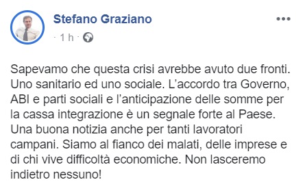 Questo quanto comunicato dal Pres. Comm. Sanità Regione Campania Graziano