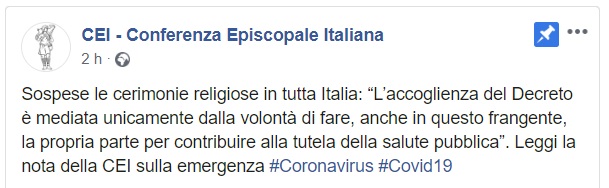 Questo quanto comunicato dalla CEI