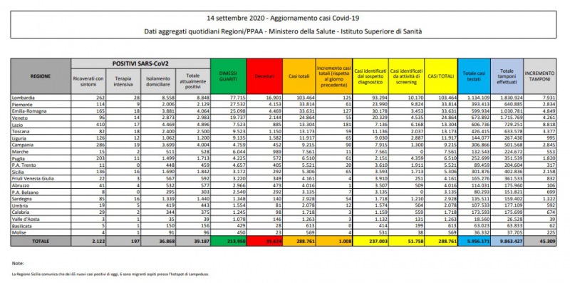 Questi i dati del Ministero della Salute: