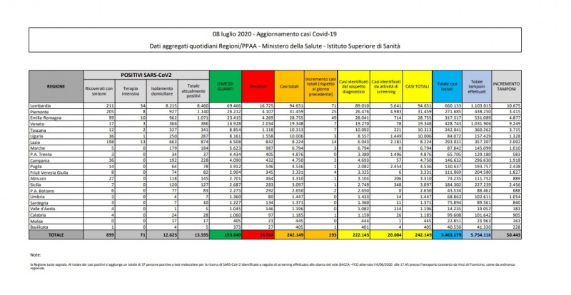 Questa la nota del Ministero della Salute: