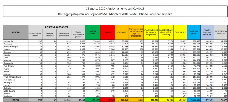 Questo quanto comunicato dal Ministero della Salute