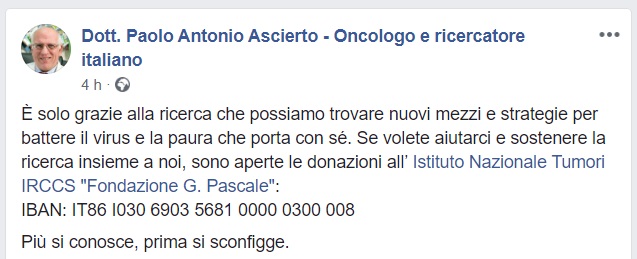 Questo quanto pubblicato dal Dott. Ascierto