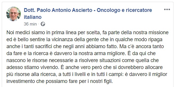 Questo quanto pubblicato dal Dott. Ascierto