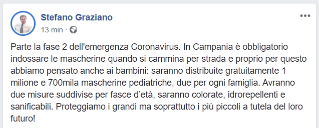 Questo quanto comunicato dal Pres. Comm. Sanità Regione Campania Graziano