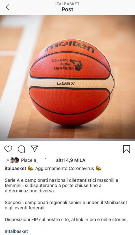 Questo quanto apprendiamo dal profilo ufficiale Instagram della Federazione Italiana Pallacanestro