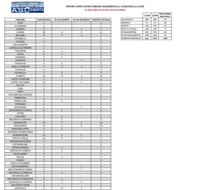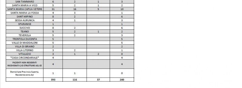 Questi sono i dati aggiornati dell'Asl di Caserta: