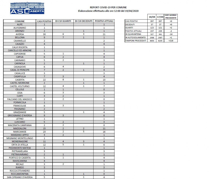 Questa la nota dell'Asl Caserta: