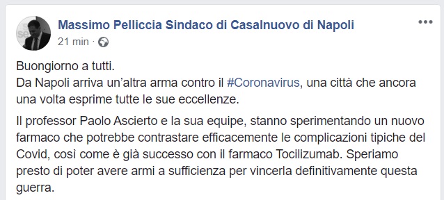 Questo quanto comunicato dal Sindaco di Casalnuovo
