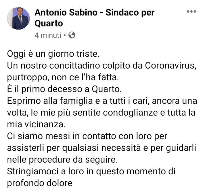 Questo quanto pubblicato dal Sidnaco di Quarto